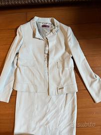 9) Tailleur bon ton di Mila Shon, in lana leggera color ghiaccio. Gonna tubino stretto. Taglia S - Euro 30