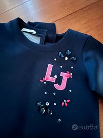 abito bambina 5 anni invernale blu scuro con pietre colorati marchio liu.jo. tubino maniche 3/4molto elegante