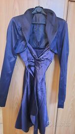 Abitino a sottoveste in tessuto simil-seta con coprispalle abbinato. Colore viola intenso, taglia S