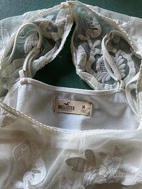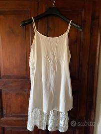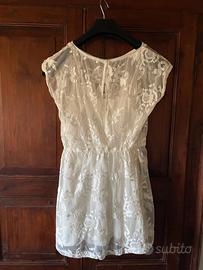 Grazioso abitino da cerimonia color panna in pizzo e tessuto Jersey 95% cotone, 5% elastan. Taglia M