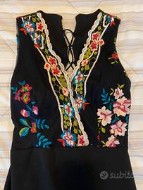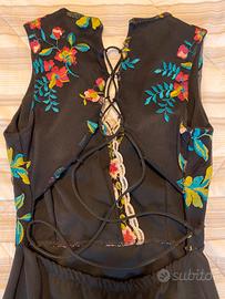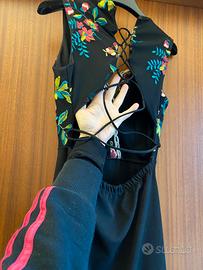 Abitino floreale, corpetto lavorato con coppe interne, schiena scoperta con incrocio di lacci, tessuto elasticizzato. Ottima vestibilita’. Tg. S usato pochissimo. #abito #tubino #nero #floreale #corpetto lavorato #coppeinterne #elasticizzato #schienascoperta #colorato #small #taglias