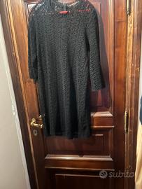 Abitino nero traforato tipo pizzo macramè nude look se messo senza sottoveste , dritto, corto al ginocchio di Zara , taglia L forse 46-48, messo solo una volta , in ottime condizioni . Adatto da cocktail o da sera . Molto carino addosso . Maniche sotto al gomito .