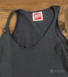 Indossato 1 sola volta. Abitino in morbido cotone e a taglio vivo (non sono visibili cuciture).Lunghezza 87 cm. Circonferenza vita 76 regolabile con il cinturino presente nel vestito.