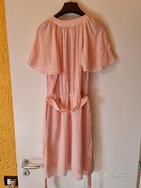 Vendesi Delicato abitino rosa con maniche corte a campana, fodera interna e cintura che segna il punto vita. Colore rosa Materiale Poliestere 100% Marca H&M Taglia XS
