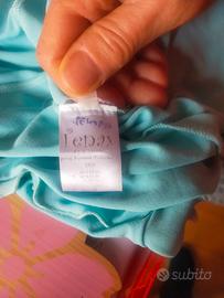 Abito a balze di colore celeste/ acqua marina della nota casa stilista di Sem Vaccaro. Presenta spalline larghe incrociate sul petto. Ottimo stato tenuto sempre in armadio e usato poco. Composto da Acetato, poliammide ed elastan in varie percentuali. Taglia 44