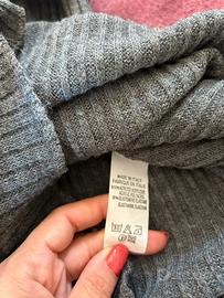 Vestito a costine, a collo alto color grigio. Spalle:40cm Seno: 42 cm Vita: 34cm Lunghezza: 94cm