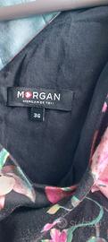 Abito in cotone della marca francese Morgan. La stampa è floreale su sfondo nero. È svasato con taglio skater. Condizioni ottime. Taglia S, IT 40.