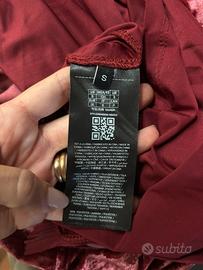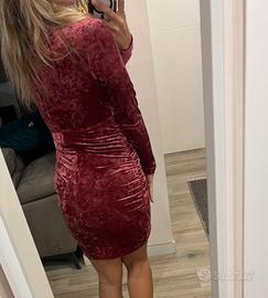 Vendo abito corto in velluto effetto “crushed”, colore rosa antico. Modello aderente con arricciature laterali che valorizzano la silhouette. Manica lunga, scollo a V morbido e tessuto elasticizzato molto comodo. Nuovo con cartellino.