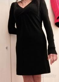 abito aderente in maglia tg SM VESTE 40 42 MASSIMO con scollatura a V ( volendo sotto si può mettere un lupetto)OER DETTAGLI MODELLO E VESTIBILITÀ GUARDARE FOTO è in ottimo stato come da foto indossato una stagione.bil colore è nero
