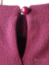 Veste molto bene, comodo ed elegante. Si infila dall' alto . Bottoncino di chiusura posteriore . Lunghezza 86, spalle 40, da ascella ad ascella 48. Il cartellino interno è stato tagliato perché era rigido, strofinava contro la gamba e dava fastidio.