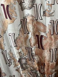 Abito donna lungo Alviero Martini Prima Classe, taglia 44, fantasia Geo, viscosa, con fodera, fettuccia in vita colore bordeaux, maniche ca lunga con elastico