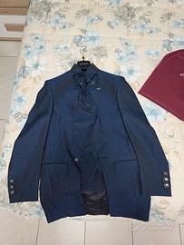 Vendo Abito Andrea Versali Cerimonia modello giacca alla Coreana, colore blu notte con trama damascata, taglia 54.