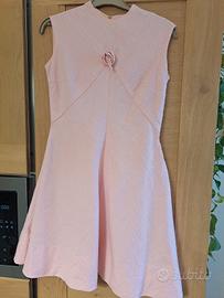 Abito vintage '50/'60 con gonna ampia, zip sul fianco e rosa applicata sul davanti.
