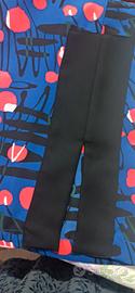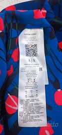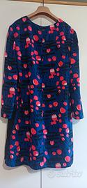 Abito con silhouette morbida e fluida, dai bei colori accesi. Spacchi laterali con bordo nero, anche le maniche riprendono la svasatura dell' abito. Foderato soli il corpetto. Misure : spalla cm. 12, spalle cm. 45, punto seno cm. 51, vita cm.54, fondo cm. 62, lunghezza cm. 92, lunghezza manica cm. 57 con ampiezza finale cm. 21.