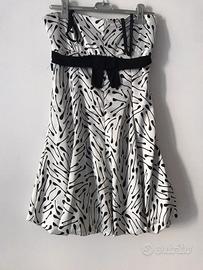 Abito Artigli tessuto lucido bianco/nero tg. XS bretelle regolabili chiusura a lato