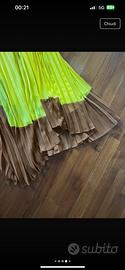 ABITO ASIMMETRICO PLISSÉ MULTICOLORE CON SCOLLO ALL'AME RICANA