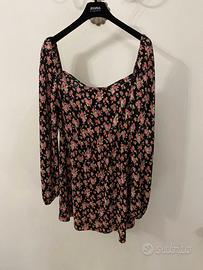 Fresco abito ASOS con stampa floreale su fondo nero. Scollato, lunghezza sopra il ginocchio, elastico in vita. Perfetto per ogni occasione. Taglia 40 EU. Ottime condizioni.