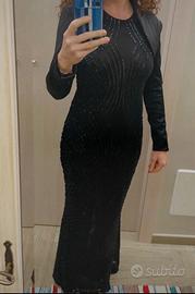 Abito lungo ricami con paillettes nere Taglia unica veste come M comodo Poco elasticizzato Cerniera dietro Spacco dietro Copri spalle escluso Lusinghiero Luminoso Vendita privata Visto e piaciuto come da foto No reso No rimborso