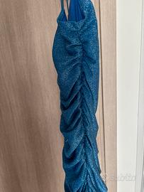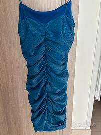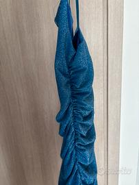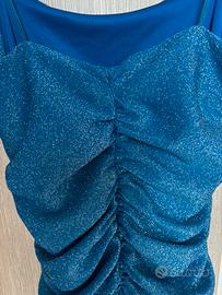 Vestito azzurro/blu brillantinato, ideale per fare serata. è arricciato dietro e ai lati, non prude. Taglia xs