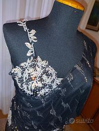 È stato confezionato da sarta artigiana con Swarovski posizionati manualmente.