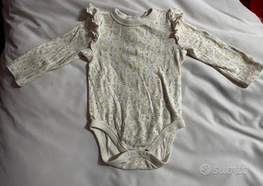 Abito da bambina composta da un body in caldo cotone con stampe e gonna con bretelle in velluto. Usato poche volte e proveniente da Disney Store. Taglia 12-18 mesi.