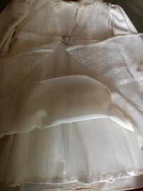 Abito battesimale mis.2,colore panna, completo di calza e scarpine,tessuto ricamato e seta,