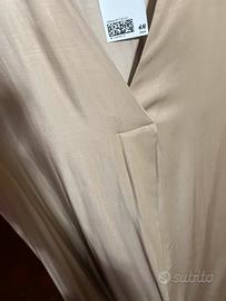 Abito lungo tipo caftano color beige biscotto, di H & M con maniche corte . La stoffa sembra un raso pesante , Nuovo con cartellino . Misura L viscosa e poliestere . Molto largo e morbifo . Volorr molto bello.
