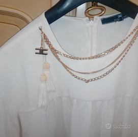 bel vestito bianco con collana dorata tg 44 in ottime condizioni generali integra