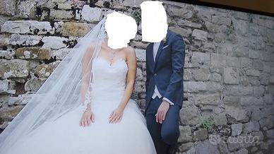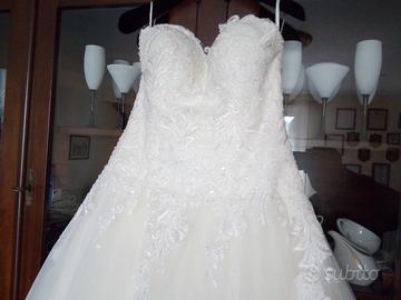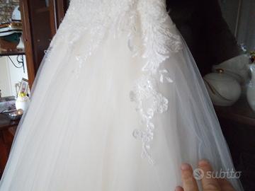 vendesi abito da sposa bianco, TG 42, x un altezza della persona di 1,65 - 1,70, modello del 2017 acquistato presso atelier elsa sposa trevi pg completo di velo e cerchio