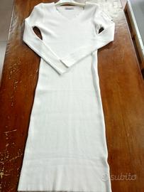 Vendo bellissimo abito midi in maglia a costine di colore bianco ottico. Il vestito ha un design minimalista ed estremamente raffinato, ideale per valorizzare la silhouette con eleganza e semplicità. Il tessuto elasticizzato garantisce un comfort assoluto per tutta la giornata, adattandosi perfettamente alle forme senza stringere. Caratteristiche del Capo: