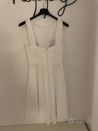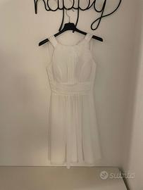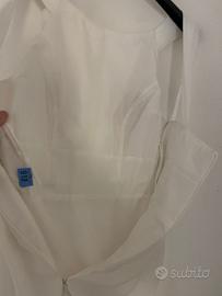 Abito bianco in tulle, completamente foderato in cotone, con bustino e coppe preformate (non serve il reggiseno). Veste una taglia 38/40. A me arriva al ginocchio ma sono piccolina (155 cm).