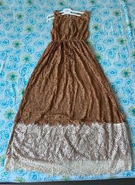 Abito bicolore completamente traforato tg. S. Può essere usato così anche come copricostume, oppure mettendo la sua sottoveste in maglina color carne (in foto).