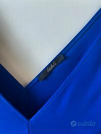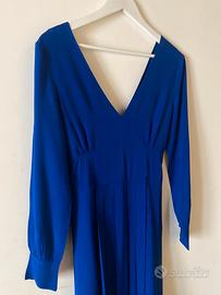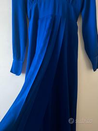 Vestito da sera elegante blu elettrico Carla G. a maniche lunghe. Nuovo senza cartellino. Taglia: 40 Materiali: Seta 32% Acetato 68%