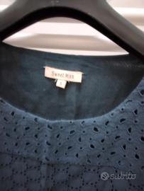 Abito midi Sweet Miss, tg S, perfette condizioni, colore blu, in lino 60%, cotone 40%, con fodera interna in cotone 100%, cerniera sul fianco.