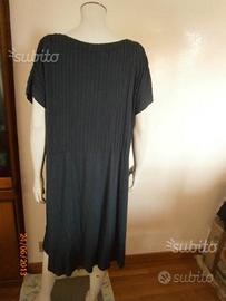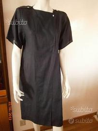 Elegante abito blu 100 % lino con inserto bianco e piccoli bottoncini bianchi di stile militare. Si noti il particolare sulle spalle. Fresco, facile vestibilità, tg. 44.