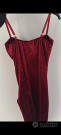 Abito in velluto bordeaux con brillantini. Taglia unica, elasticizzato. No zip. Spallina regolabile. Nuovo con etichetta.