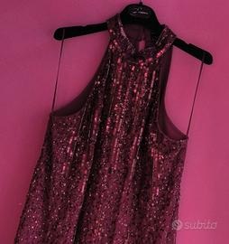 abito bordeaux vestibilità morbida lunghezza media completamente paiettato sul davanti bottoncini di chiusura sul dietro taglia italiana 42 brand lipsy