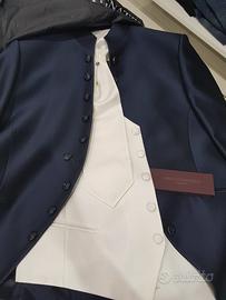 Abito carlo pignatelli blu con bottoni azzurri. Compreso di camicia panciotto e cravatta bianca. Taglia 58