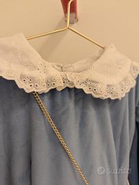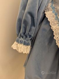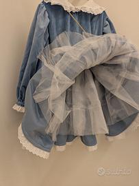 Abito sartoriale fatto a mano "Alice nel paese delle meraviglie". Per 2 anni completo di accessori borsa e grembiulino. Totalmente in velluto pizzo e tulle cucito a mano.