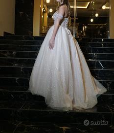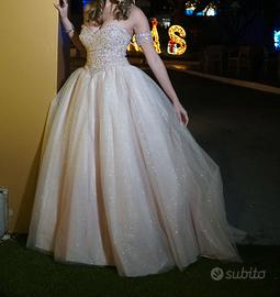 Vendo abito principesco rosa per cerimona oppure per compimento dei 18 anni , l'abito e nuovo indossato per poche ore da mia figlia per i festeggiamenti dei 18 anni.