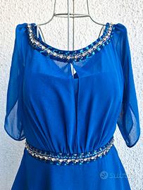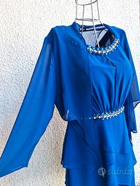 Abito blu elettrico Da occasione o per cerimonia fatto in italia da sartoria italiana prezzo originale 250 EUR non è mai stato indossato nuovo senza cartellino Ma portato il lavanderia e pulito. Talia 44/46