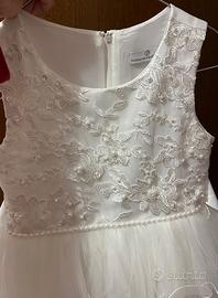Vendo splendido abito da bambina firmato Nazareno Gabrielli, ideale per occasioni speciali come battesimi, comunioni, matrimoni o feste eleganti. Colore: bianco/avorio Corpetto ricamato con fiori e perline Gonna ampia in tulle a balze Chiusura con zip sul retro Finiture curate e di alta qualità Usato solo una volta, in ottimo stato (pari al nuovo) Taglia: 8anni ma veste un po’ più piccolo 5-7 anni.