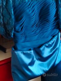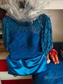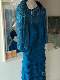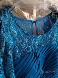 Abito Cerimonia Blu Petrolio Pizzo Paillettes e Gonna Plissettata – Taglia 46