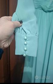 abito da cerimonia colore tiffany, con spacco laterale e schiena scoperta.