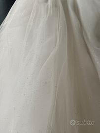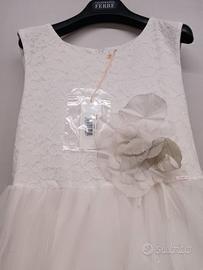 Vendo abito ragazza mai indossato, ideale per Comunione/Cresima/Matrimonio. Corpetto ricamato con applicazione a spilla, gonna tulle vaporosa con glitter e sottogonna leggermente a strascico.