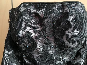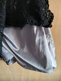 ABITO ELEGANTE CERIMONIA IN PIZZO COLOR NERO CON RASO GRIGIO PERLA TG,48