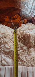 L'abito è nuovo, mai stato indossato. Acquistato per mia figlia per una cerimonia cui non è più andata. Disponibile anche la borsetta in raso lucido con la stessa lavorazione a fiori in rilievo.