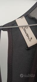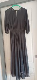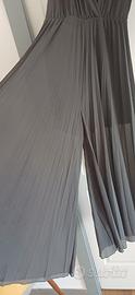Abito da cerimonia, dalle spalle lungo 145 cm. Taglia XS-S. Sui fianchi ha un elastico morbido in modo da adattarsi a entrambe le taglie. Sono pantaloni larghi che essendo plissettati sembrano una gonna. Ha i pantaloncini per evitare la trasparenza. Acquistato nel negozio di Sandro Ferrone. Abbianto con una bella cintura è molto elegante.Manica a 3/4. Ritiro Roma zona Eur/Laurentina