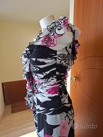 Abito cerimonia nuovo con cartellino, in pura seta taglia 42 Abito longuette stupendo, unico nel suo genere.