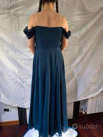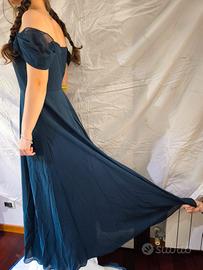 Abito blu lungo JJ's House Taglia 14 anni (164 cm) Tessuto chiffon Lunghezza a terra Scollatura spalle scoperte Seno 81 cm Vita 76 cm Fianchi 89 cm mai usato spedisco oppure scambio a mano su Roma.